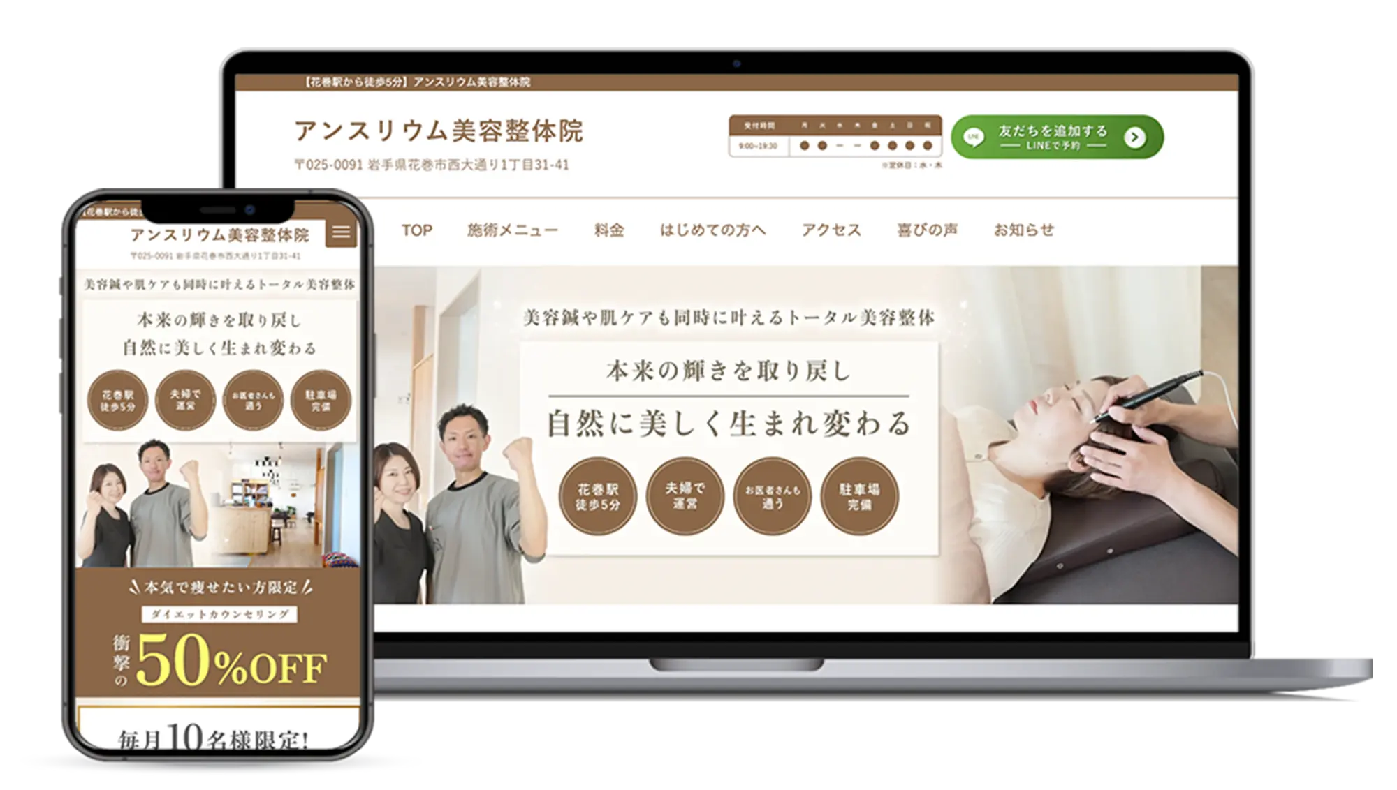 ホームページをリニューアルいたしました!|花巻駅から徒歩5分【アンスリウム美容整体院】ダイエット・小顔